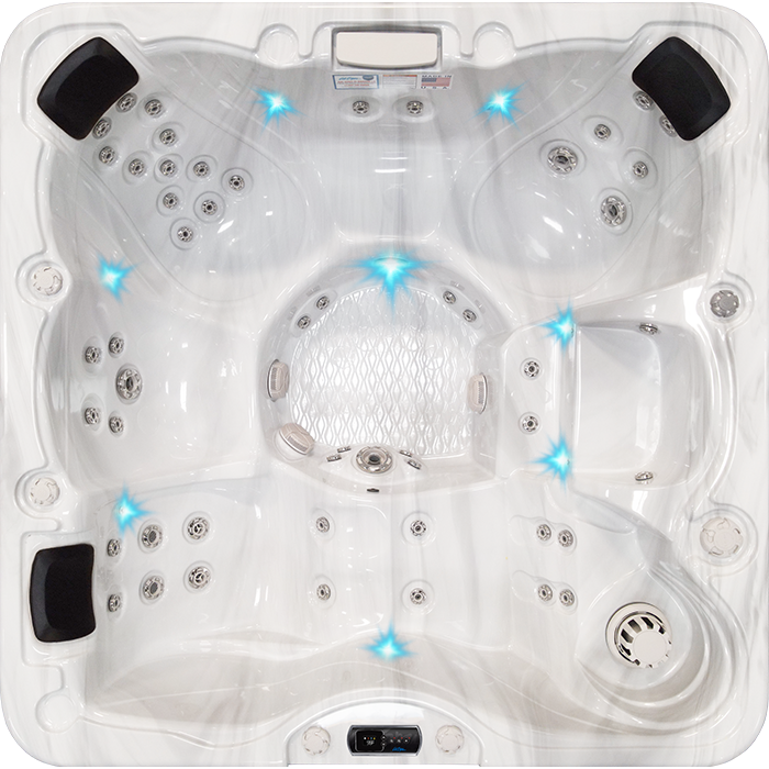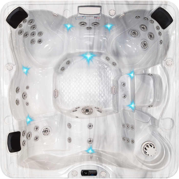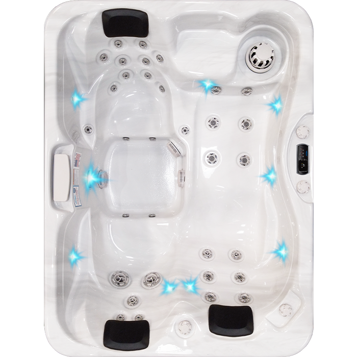 PURESILK Ozone (03) an extremely effective oxidizer, is injected into the spa water to oxidize organic waste. This oxidation process frees up the sanitizer to be more effective in destroying harmful microorganisms and killing bacteria